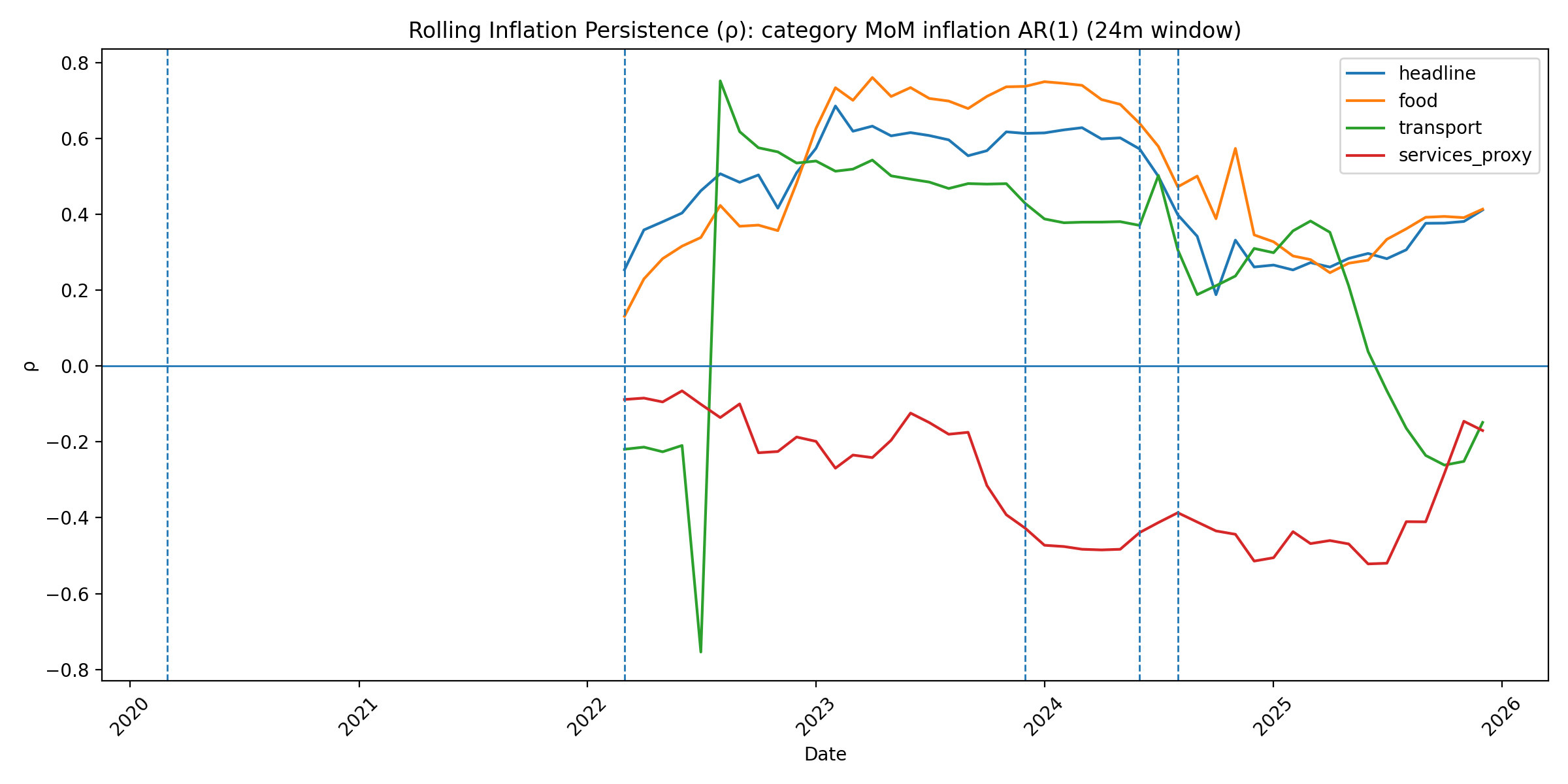 We estimate rolling 24-month AR(1) coefficients.